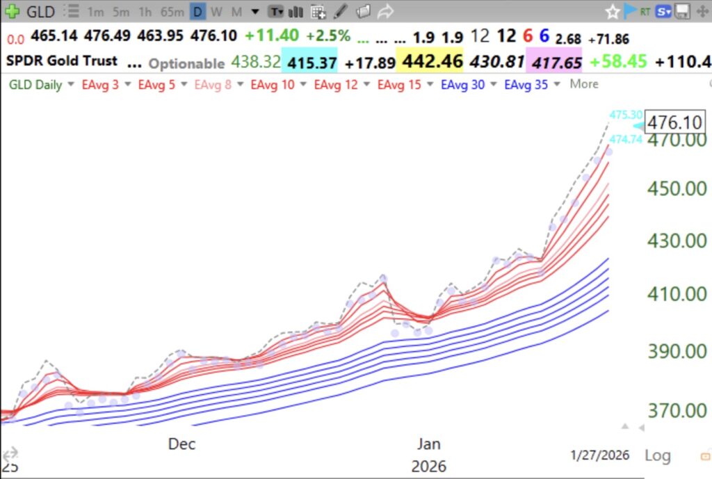 Perhaps the Fed is going to lower rates again. The dollar is acting like rates are coming down. When interest rates fall, people sell dollars and buy gold. I am slowly buying some TQQQ as the QQQ short term up-trend has now lasted 3 days. I am much more confident of a new up-trend, however, when it reaches Day 5. Buying TQQQ during a new short term up-trend is difficult because I question whether the recent down-trend is really over. So I buy a little and hold my breath, ever ready to exit or add more.