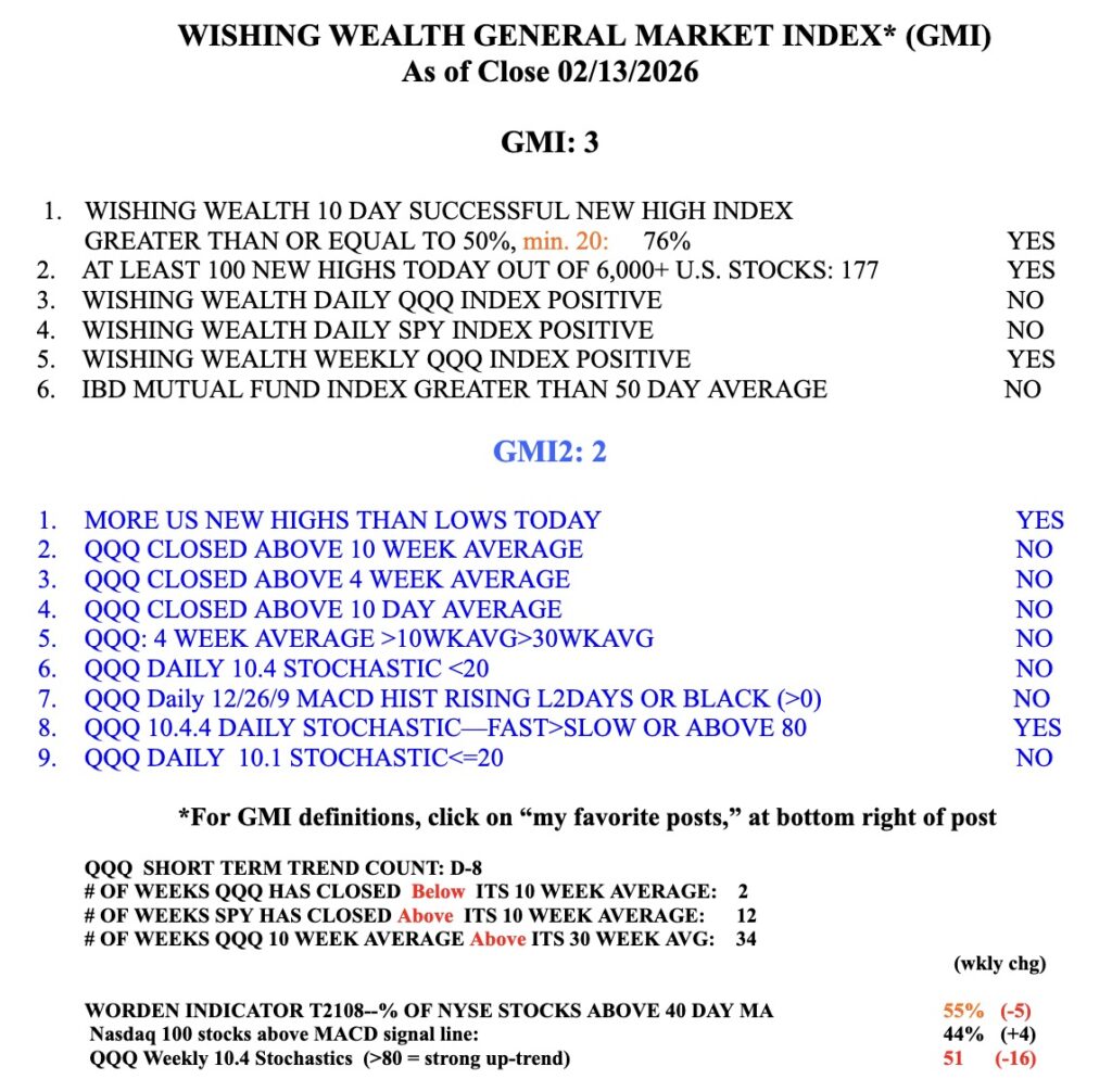21% of the 61 US stocks reaching an ATH on Friday were utilities! No wonder the GMI and GMI2, heavily focused on QQQ, are so weak. If many traders are suffering losses and margin calls from the former tech and growth leaders, liquidity could dry up in the rest of the market and we could face a significant decline. There are also too many bulls (59.6%) in the recent Investors Intelligence survey. QQQ is now resting just above the last Green Line top (@599.35 see chart). QQQ closed Friday @ 601.92, 2.57 above the Green Line and back to where it was last October. No wonder X is filled with traders complaining about their losses. If the GLB from last October fails, I suspect we will see much more weakness. Date column in the table of utilities below is the expected date of next earnings release.