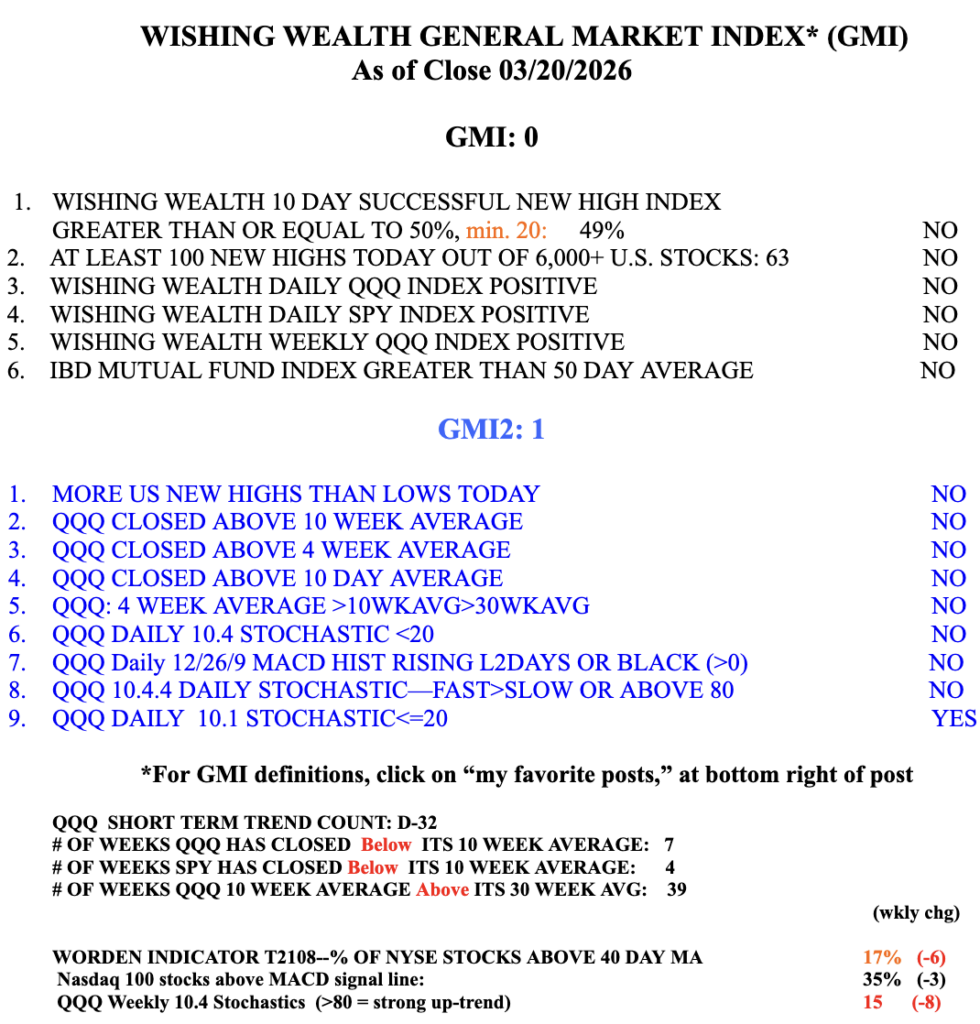 The indexes are oversold and we may see a bounce this week. If I was not in cash I would sell into any bounce. Here is the 10:30 weekly chart. The 10 week average is about to cross below the 30 week for the first time since June, 2025. Note the recent high volume weekly declines.