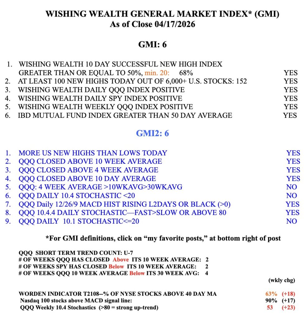 I know the market is volatile, as it reacts to every new twist and turn in the Iraq war. Still, with the GMI= GREEN, I am tiptoeing into the strongest stocks. As I will describe in Wednesday’s talk, I am focusing on the few stocks each day that trade at an ATH (all-time high). The GMI is weighted toward those stocks. On Friday, 152/6407 US stocks reached an ATH. That is 2.3%! To me, that indicates these stocks are showing extremely high relative strength. These stocks beat 98% of all US stocks. I focus on the minority of these stocks that had a GLB Friday or last week.