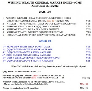 The GMI remains at 6 (of 6) and on a buy signal since 2/28.