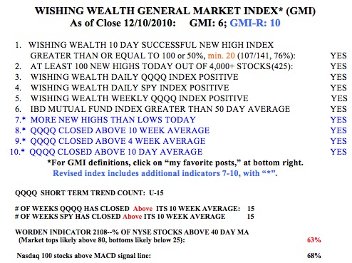 Meanwhile the GMI remains at 6 (of 6) and the markets remain in an up-trend.